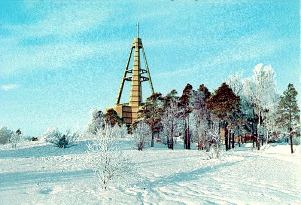 Beskrivning: S:t Botvids kyrka, byggd år 1957. Det 50 meter höga tornet med dess åtta meter höga guldkors syns långt ut till havs som en skärgårdsstadens fyrbåk. Kyrkan är en skapelse av stockholmsarkitekten Rolf Bergh.