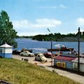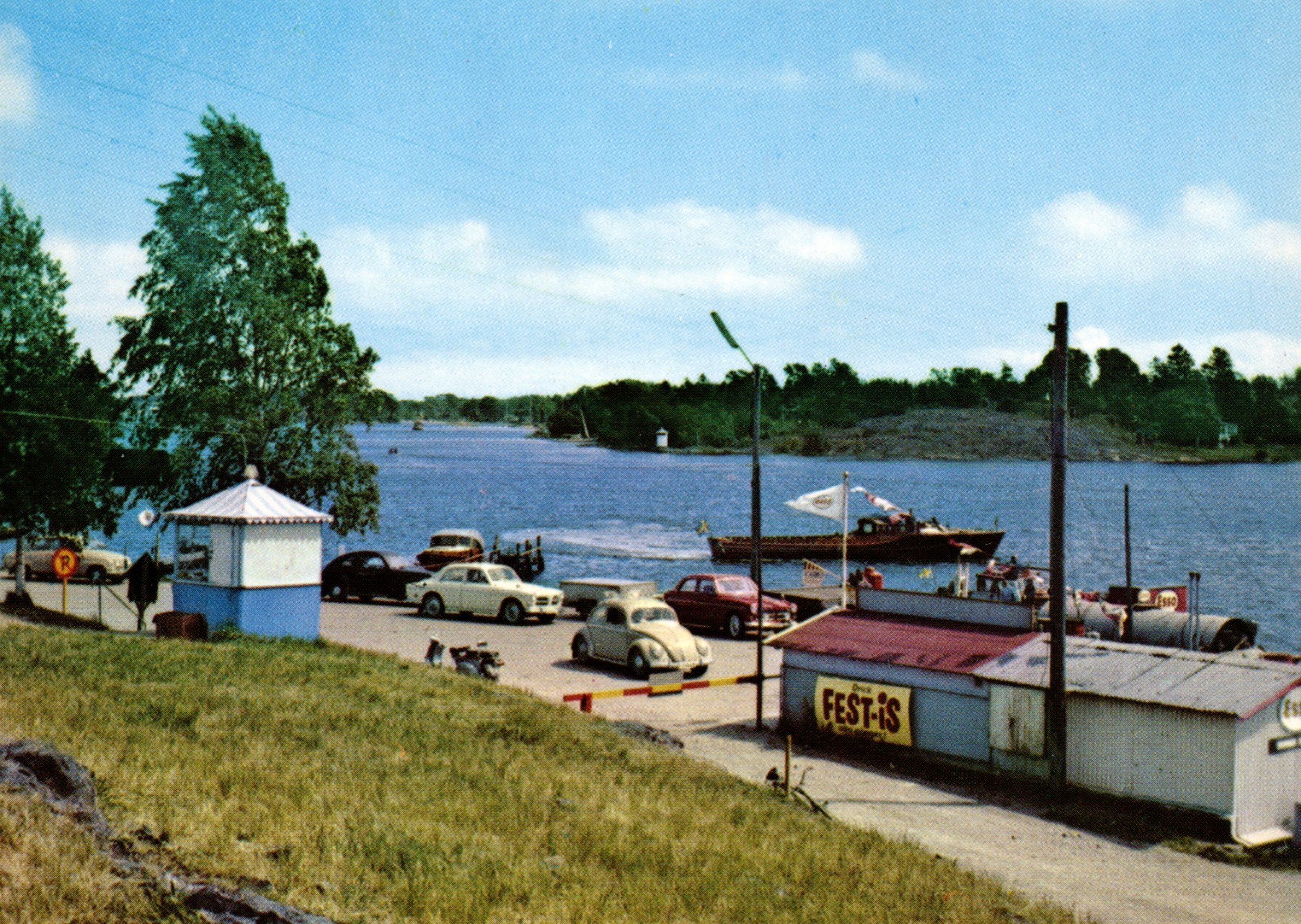 Beskrivning: Esso macken för båtar i Gamla Oxelösund. Båten är rundtursbåten Wasaholm.