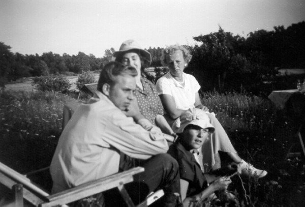 Beskrivning: Från vänster Jan Fossberg, Mary Lundell och Aili Fossberg. Framför dom sitter Sonja Ahlin. Källa: Bengt Ahlin.