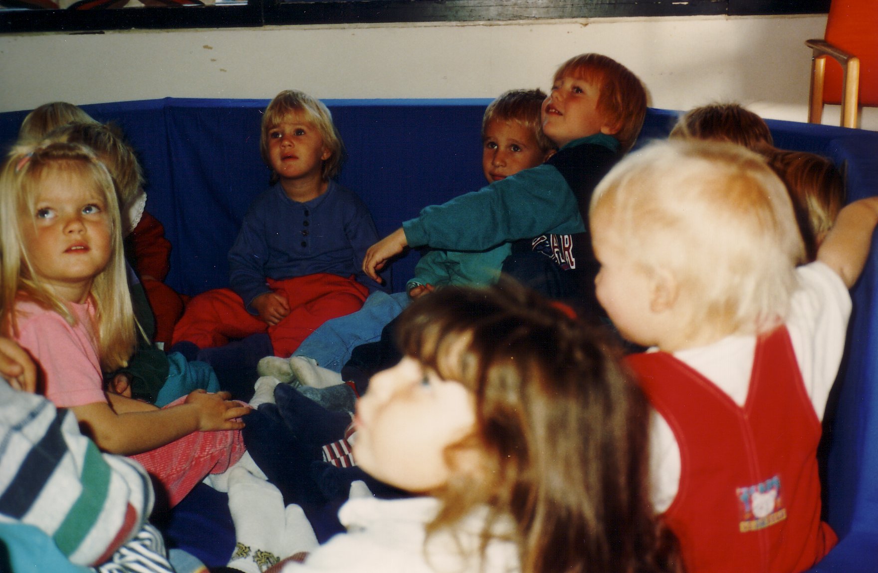 Beskrivning: Barn från daghemmet Ramdalsgården vid Ramdalsvägen 1. Bilden är tagen på 1990-talet.