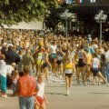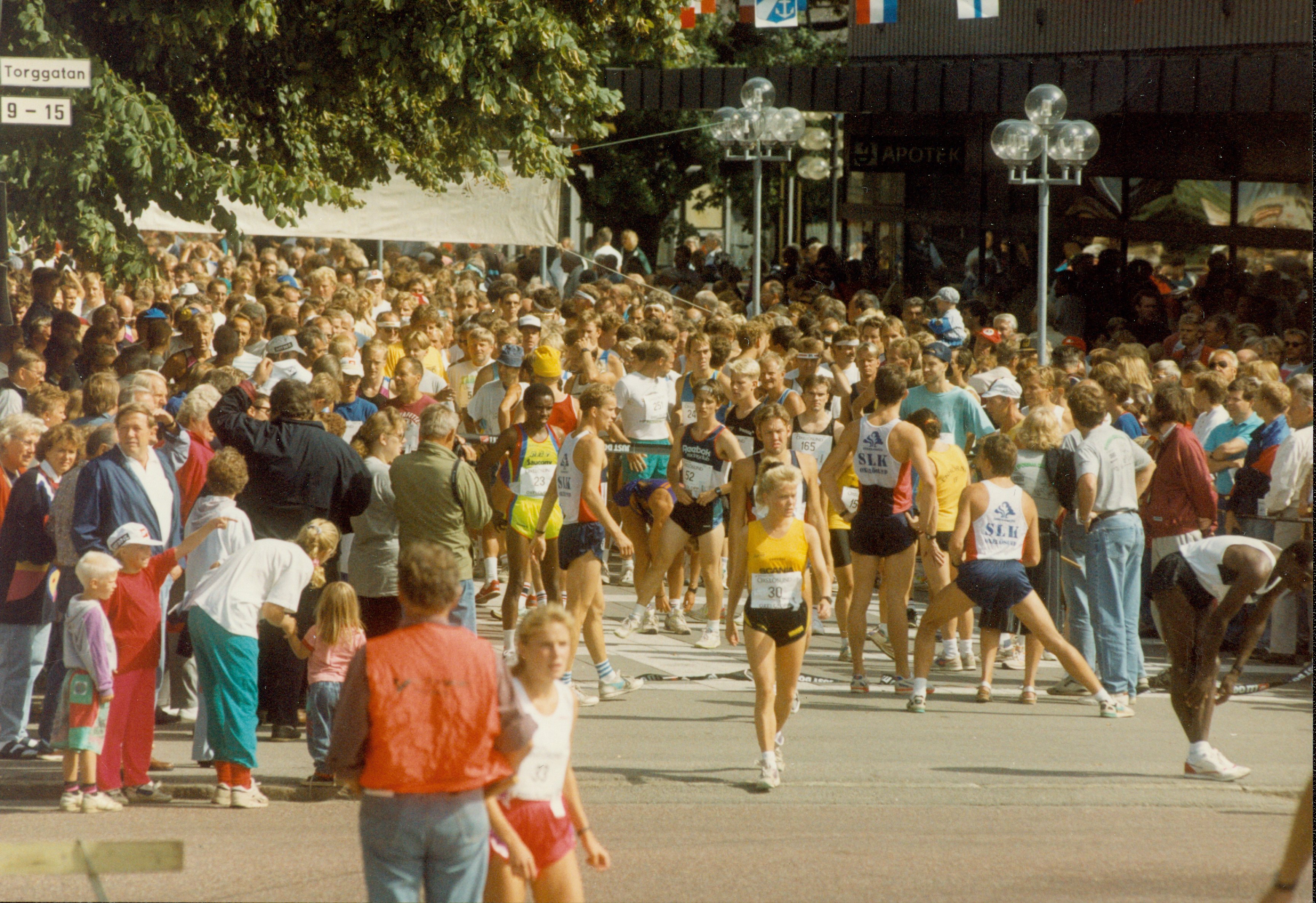 Beskrivning: Innan starten i oxelöloppet.. Löparna värmer upp innan start..