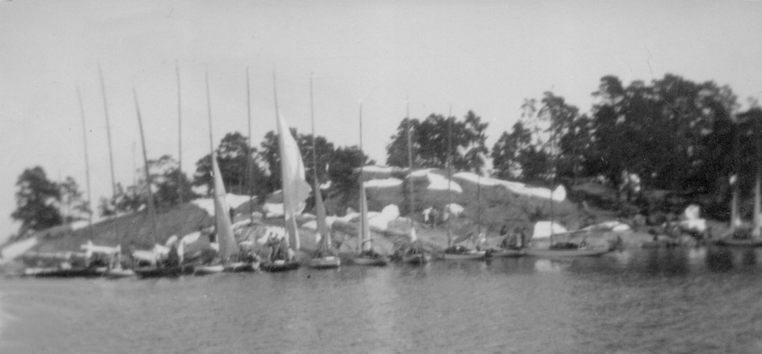 Beskrivning: Tobaksholmen med segelbåtar på 1930-talet.