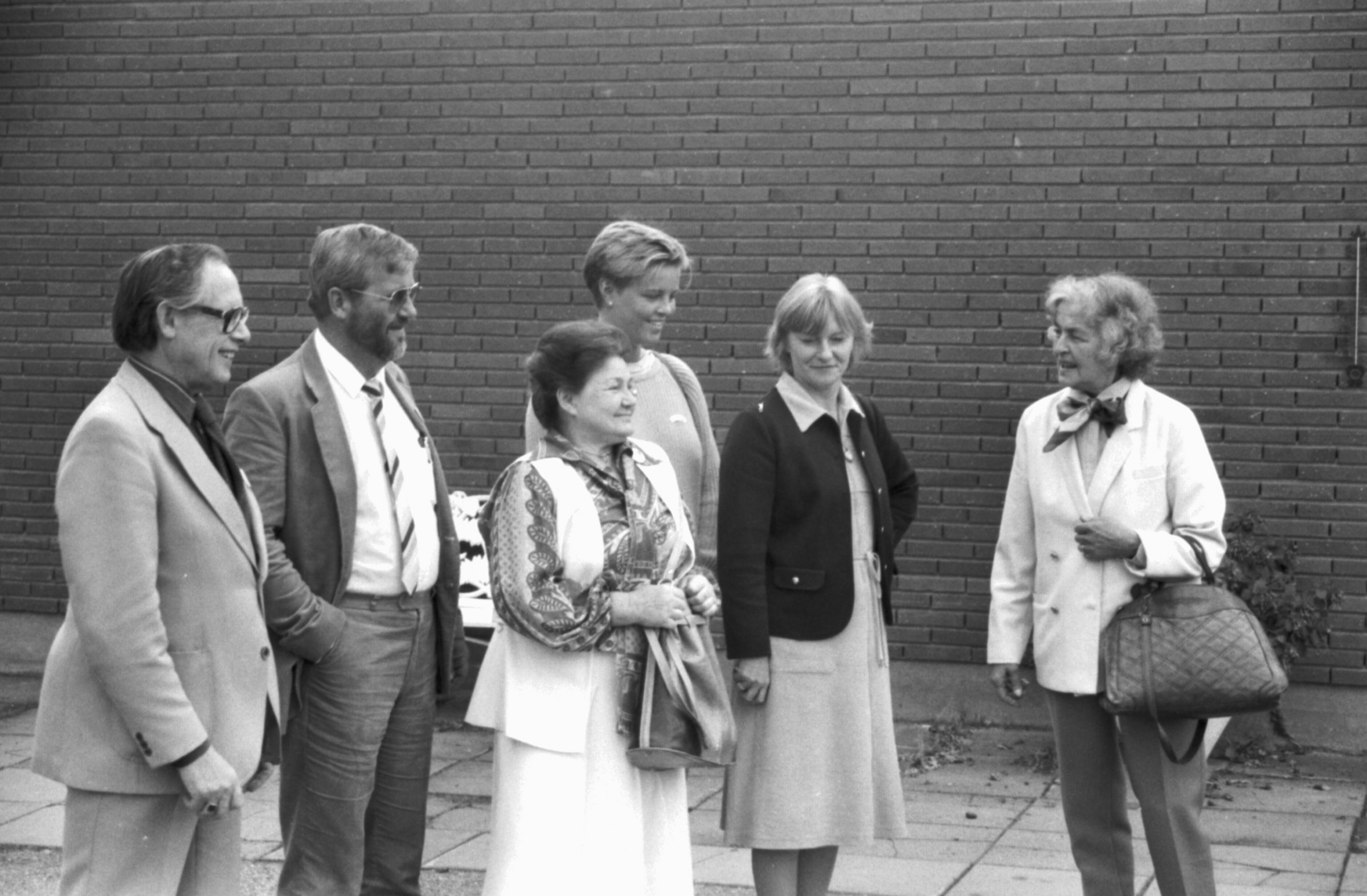 Beskrivning: Birgit Friggebo besöker Björntorp. Nr 5 Birgit Friggebo (född 1941) och nr 6 Margareta Sehlstedt.